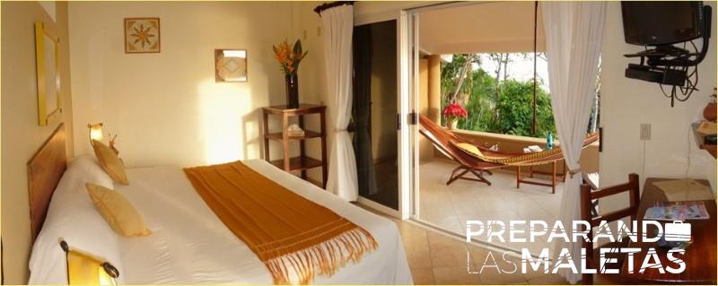 Las habitaciones tienen una invitante hamaca en la terraza, donde despertar viendo el mar desde otra perspectiva te llena de paz, y no hay teléfonos para no ser molestado en tu estancia.