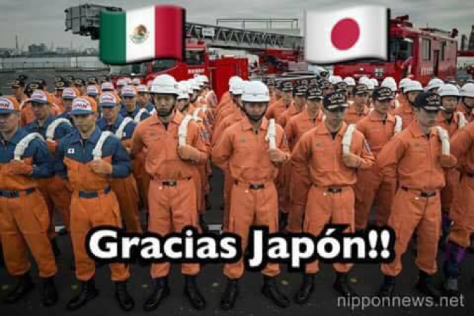 Japón fue el segundo país en llegar a la capital con 72 brigadistas especializados en derrumbes, quienes portaban herramientas de alta tecnología para levantar escombros. Trabajaron en el derrumbe de la escuela Rébsamen.